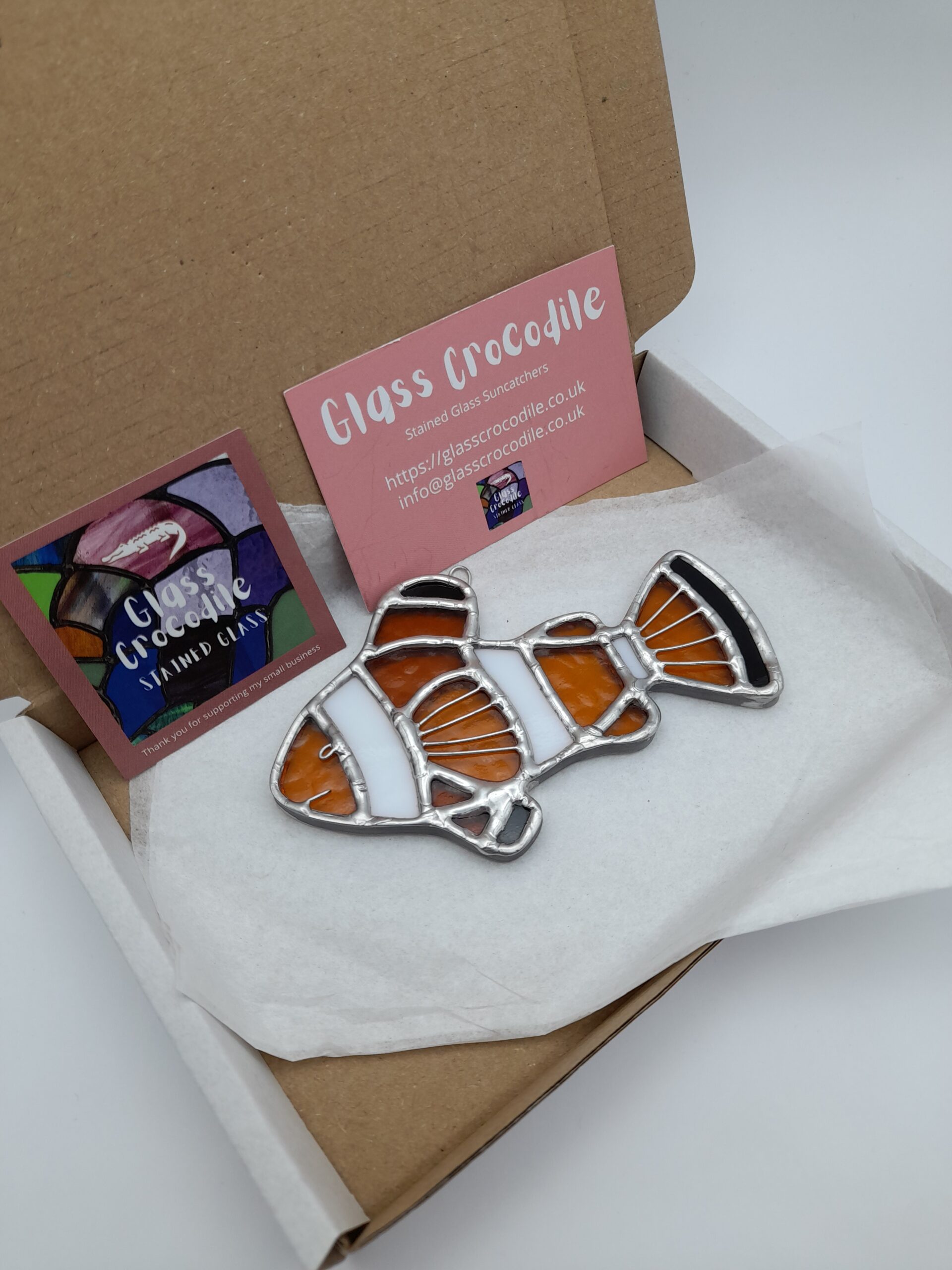 These pieces are created using opaque and Translucent glass in various shades of Orange, Black and White. The Coral accessory is not included with this item. All my work is bubble wrapped and boxed for safe postage. Please note that postage is as a small parcel due to size of box.