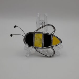 I have taken a picture of the example pieces. Your piece will be made specially for you, so it is a one off. Although your piece will be the same size and design as the example piece, please be aware that colours and textures may vary due to glass available at the time. The piece has a hanging hoop. The glass looks great hung with light shining through it, either natural or candle light. If you have any questions please ask. The stand is not included with this piece.