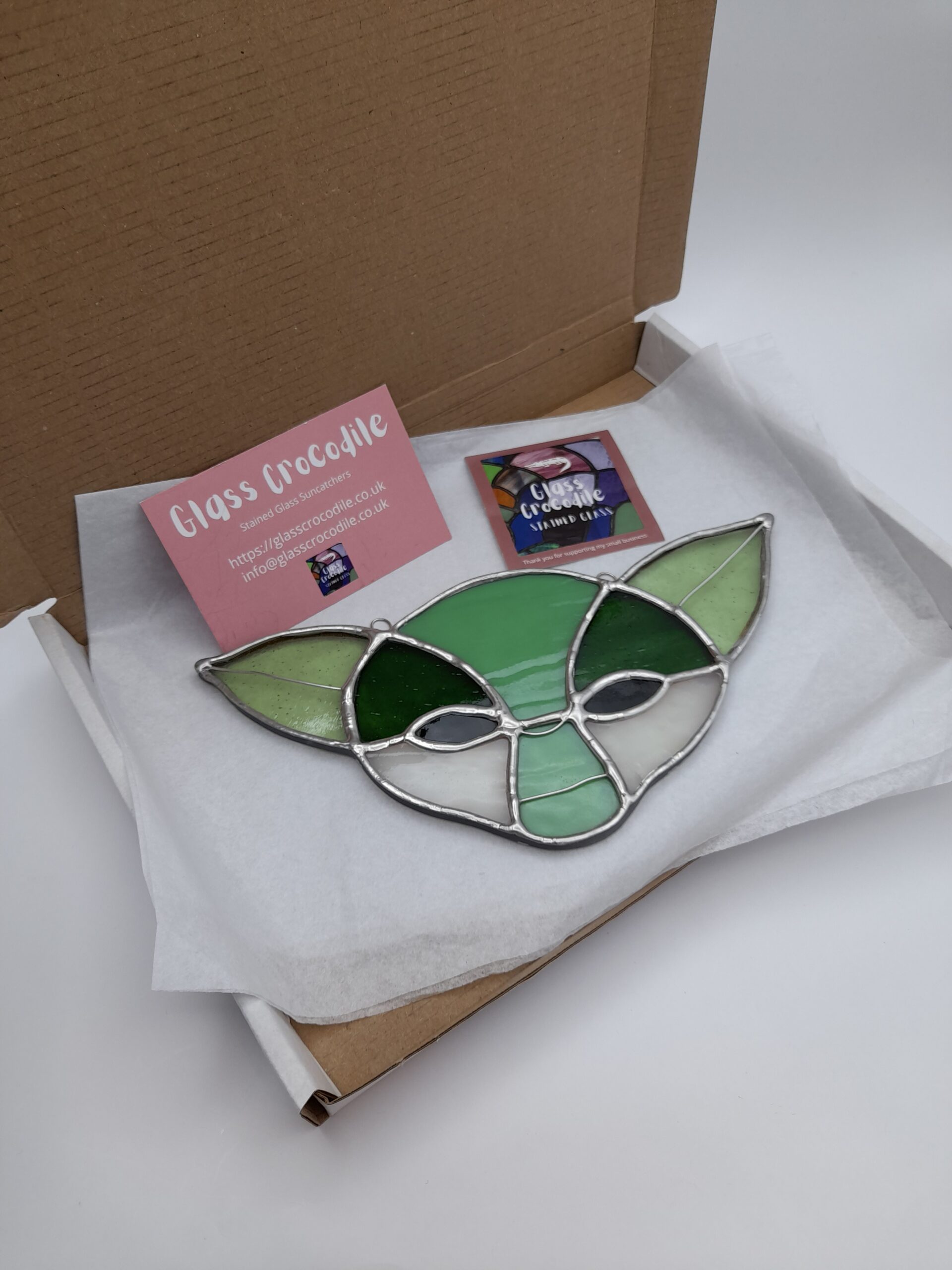 These pieces are created using opaque and translucent glass in various shades of green, beige and black. All my work is bubble wrapped and boxed for safe postage. Please note that postage is as a small parcel due to size of box.