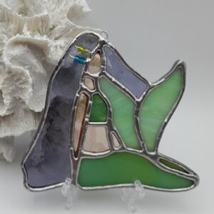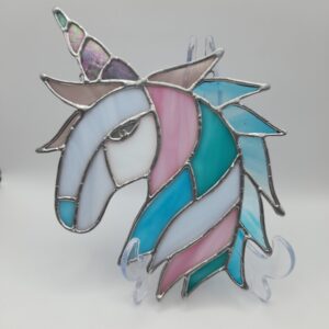 This is my own design which I have made myself using the tiffany method of stained glass making, using new and reclaimed glass. The glass is cut, ground, encased in copper foil then soldered together. I finish the piece by surrounding the edge in lead which gives the piece an added dimension and also stability. All the glass I use is professional stained glass with the colour and textures already within the glass, meaning the glass will not fade or discolour over time.